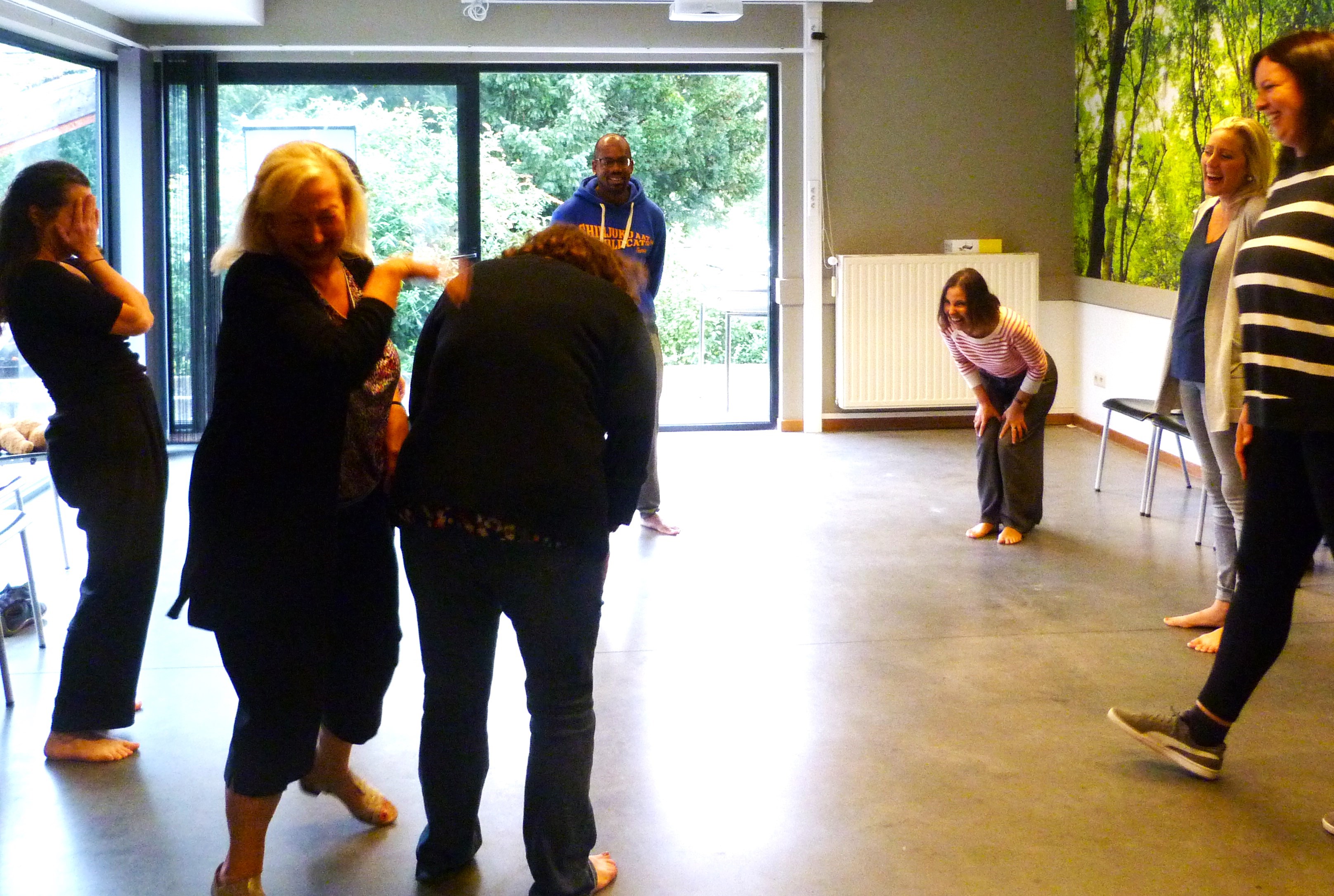 Op dinsdag 28 mei en dinsdag 4 juni speelden we de voorstelling in het Hubertustheater in Neerpelt. Het werden twee prachtige avonden, elk met een heel eigen energie. De spelers Annick, Liene, Lieve, Marcel, Marley, Martine, Niels en Stokely speelden met bijzonder veel overgave en inleving. Het publiek dat zo was opgesteld dat ze samen met de spelers een theatrale therapiecirkel vormden, werd zo volledig ondergedompeld in het beklijvende, herkenbare verhaal van de tragikomische mens.